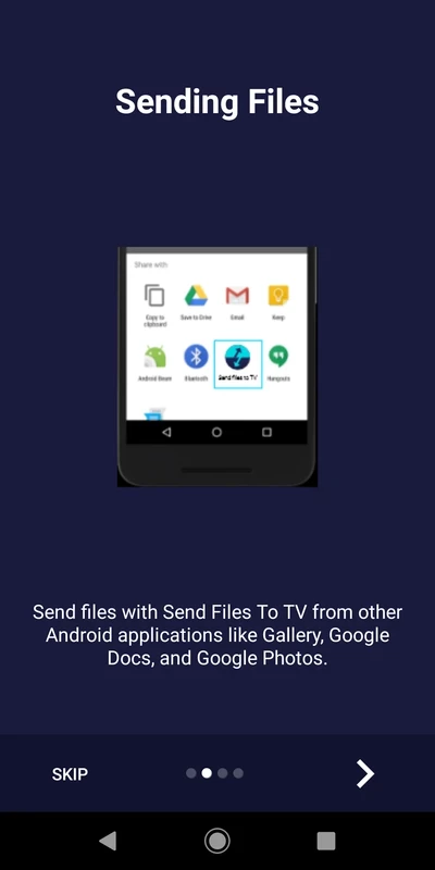 Kablo karmaşasından veya karmaşık kurulumlardan kurtulmanın en iyi çözümü; bunun yerine akıllı telefonunuza 'Send Files to TV' uygulamasını yükleyin ve fotoğraflar, videolar vb. dahil olmak üzere en sevdiğiniz multimedya dosyalarını Android TV'nize, bilgisayarınıza ve hatta başka bir Android cihaza güvenilir bir şekilde aktarın. Harici donanım gerektirmeden ev ekosisteminiz için verimli bir bağlantı sağlayan yerel bir Wi-Fi ağı kullanır.